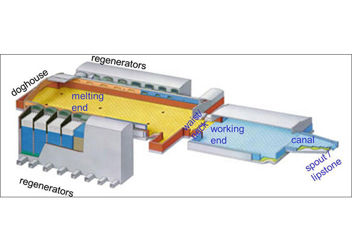 300TPD Cross Fired Regenerative Furnace Thiết bị tan kính lớn 0